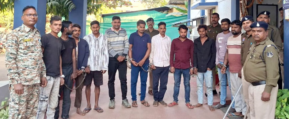 करण साहू, नोहर विश्वकर्मा, विमलेश साहू, थानचंद साहू, सुनील साहू, शिव साहू, गजेन्द्र साहू, लक्ष्मीचंद सतनामी, भुरू उर्फ ओमप्रकाश सतनामी, उमाशंकर यादव एवं अक्षय साहू शामिल है।