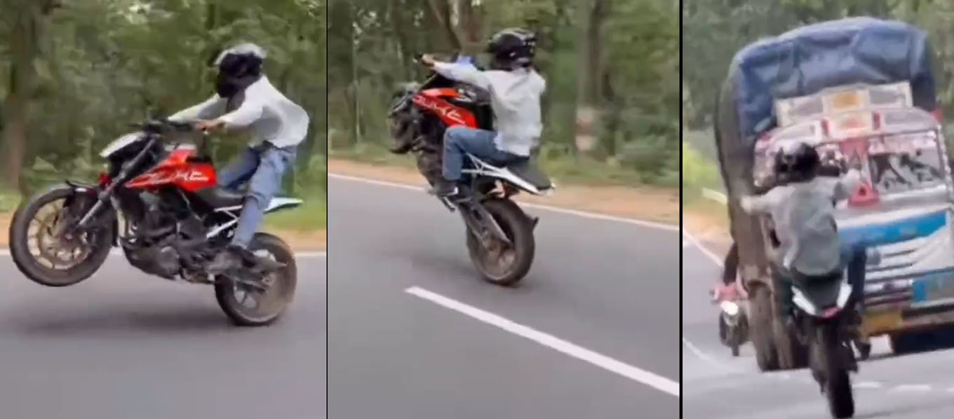 यह वीडियो जशपुर जिले के कुनकुरी-तपकरा मार्ग पर स्थित श्री टोली गांव के पास का बताया जा रहा है कि है, जहां युवक ने केटीएम ड्यूक बाइक पर खतरनाक अंदाज में फ्रंट व्हील लिफ्ट (व्हीली) स्टंट किया। युवक ने अपने मोबाइल से यह वीडियो खुद रिकॉर्ड किया और सोशल मीडिया पर रील बनाने के लिए पोस्ट कर दिया। वीडियो सामने आने के बाद लोगों में आक्रोश व्याप्त है। लोगों ने पुलिस से सख्त कार्रवाई की मांग की है।