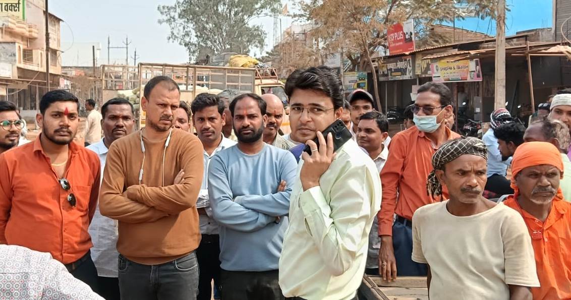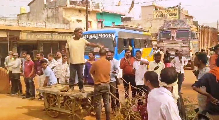 राजिम में सड़क की धूल से परेशान व्यापारियों का चक्काजाम, तहसीलदार के आश्वासन पर खुला मार्ग