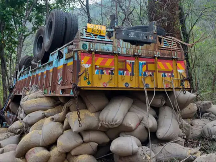 धान से भरा ट्रक पलटा, ड्राइवर-हेल्पर की मौत; एक अन्य घायल