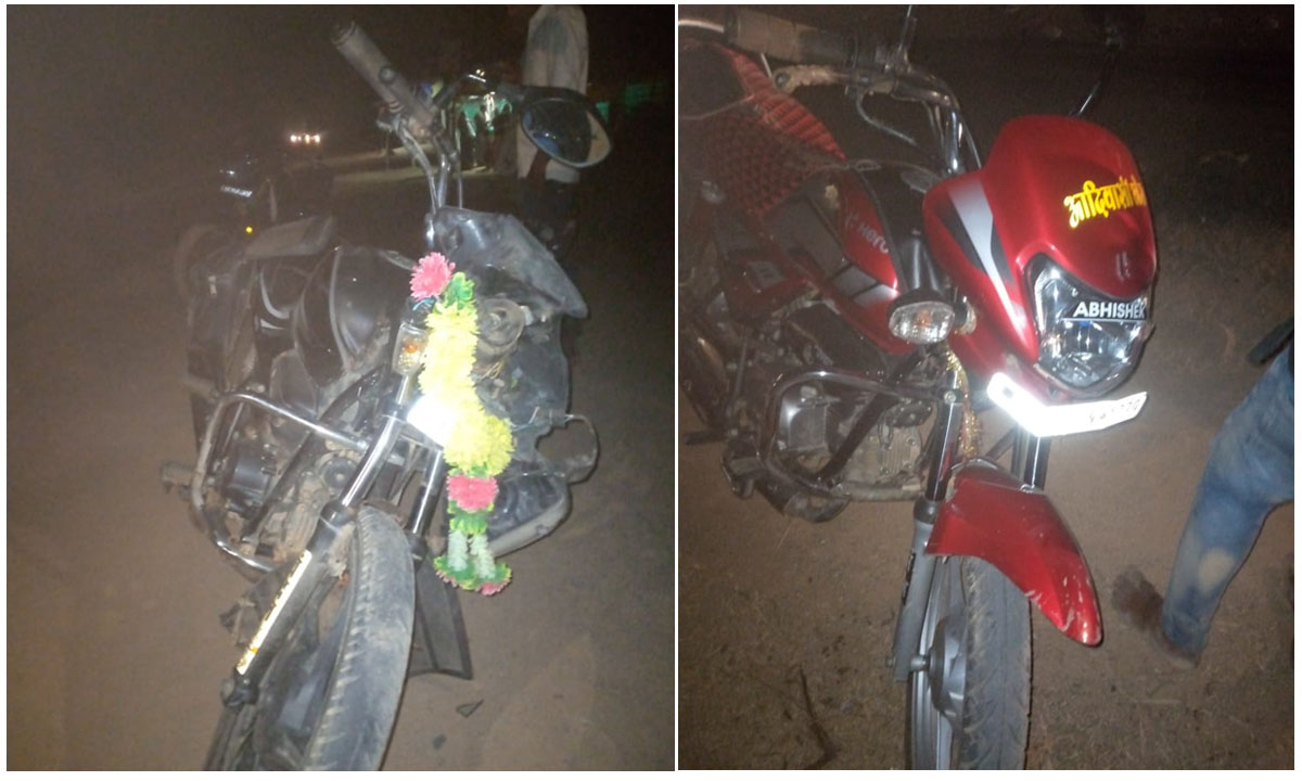 छुरा ब्रेकिंग: दो बाइकों की आमने-सामने जोरदार भिड़ंत, बाइक के उड़े परखच्चे