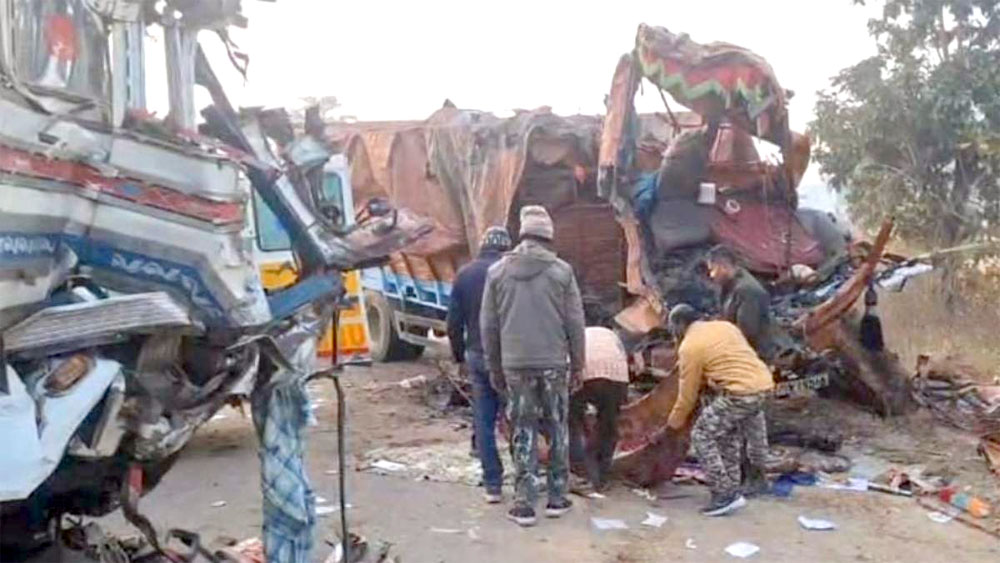 भीषण सड़क हादसा: दो ट्रकों की आमने-सामने जोरदार भिड़ंत, तीन की मौत