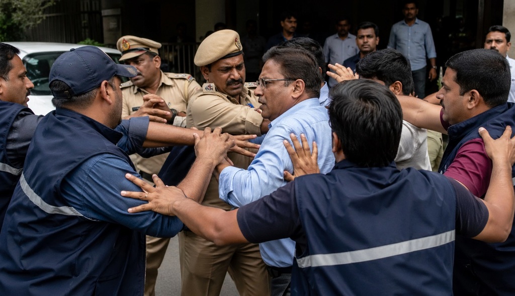 स्थिति उस समय और गंभीर हो गई जब ED के डिप्टी डायरेक्टर नीरज कुमार सिंह मौके पर पहुंचे और आरोपियों से जांच में सहयोग करने की अपील की। इस दौरान जय प्रकाश गांधी ने डिप्टी डायरेक्टर नीरज कुमार सिंह को धक्का दे दिया। इसके बाद मौके पर तनावपूर्ण माहौल बन गया और अफरा-तफरी की स्थिति निर्मित हो गई।